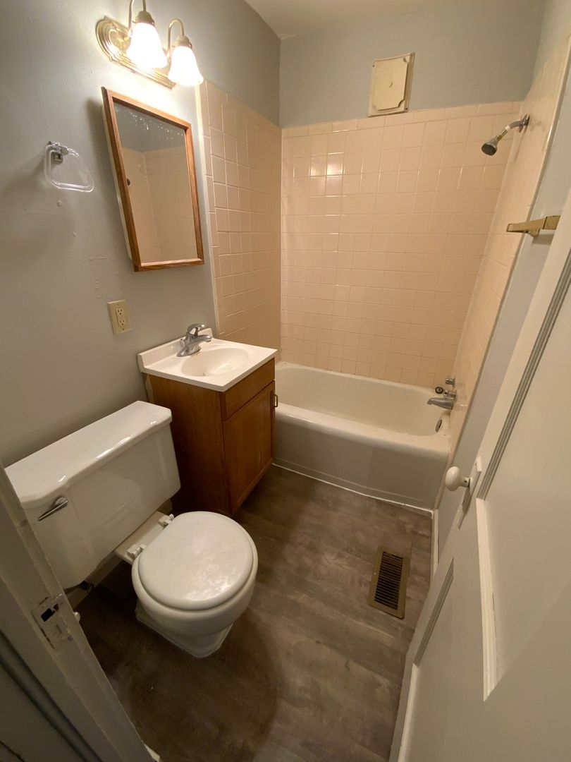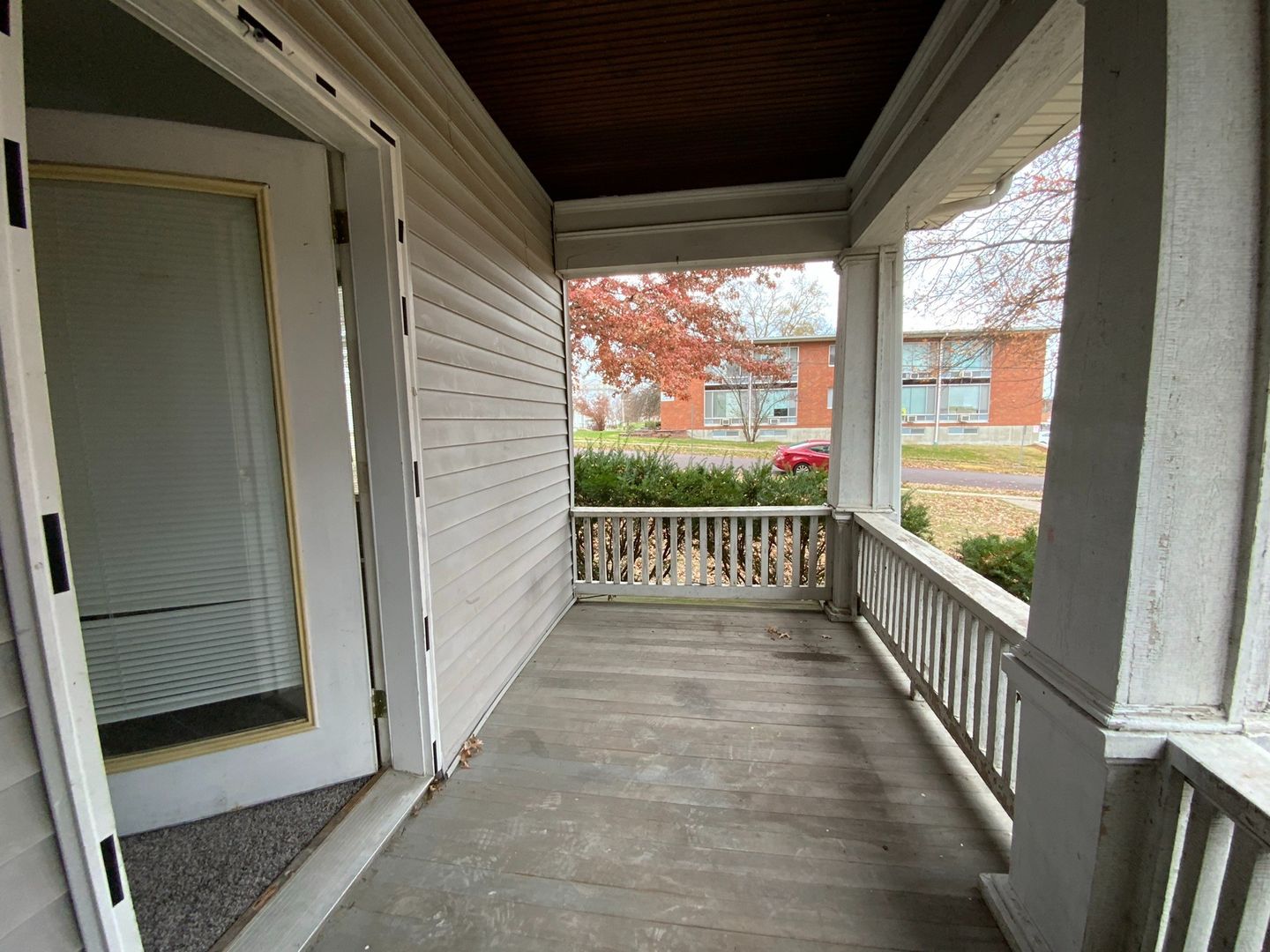 Large 2 bedroom apartment on main level of a 3 unit converted older home. Two other one bedroom apartments upstairs. Large front porch and lots of yard space. Street parking. No laundry at this unit, but there is a laundry room nearby you would have access to.